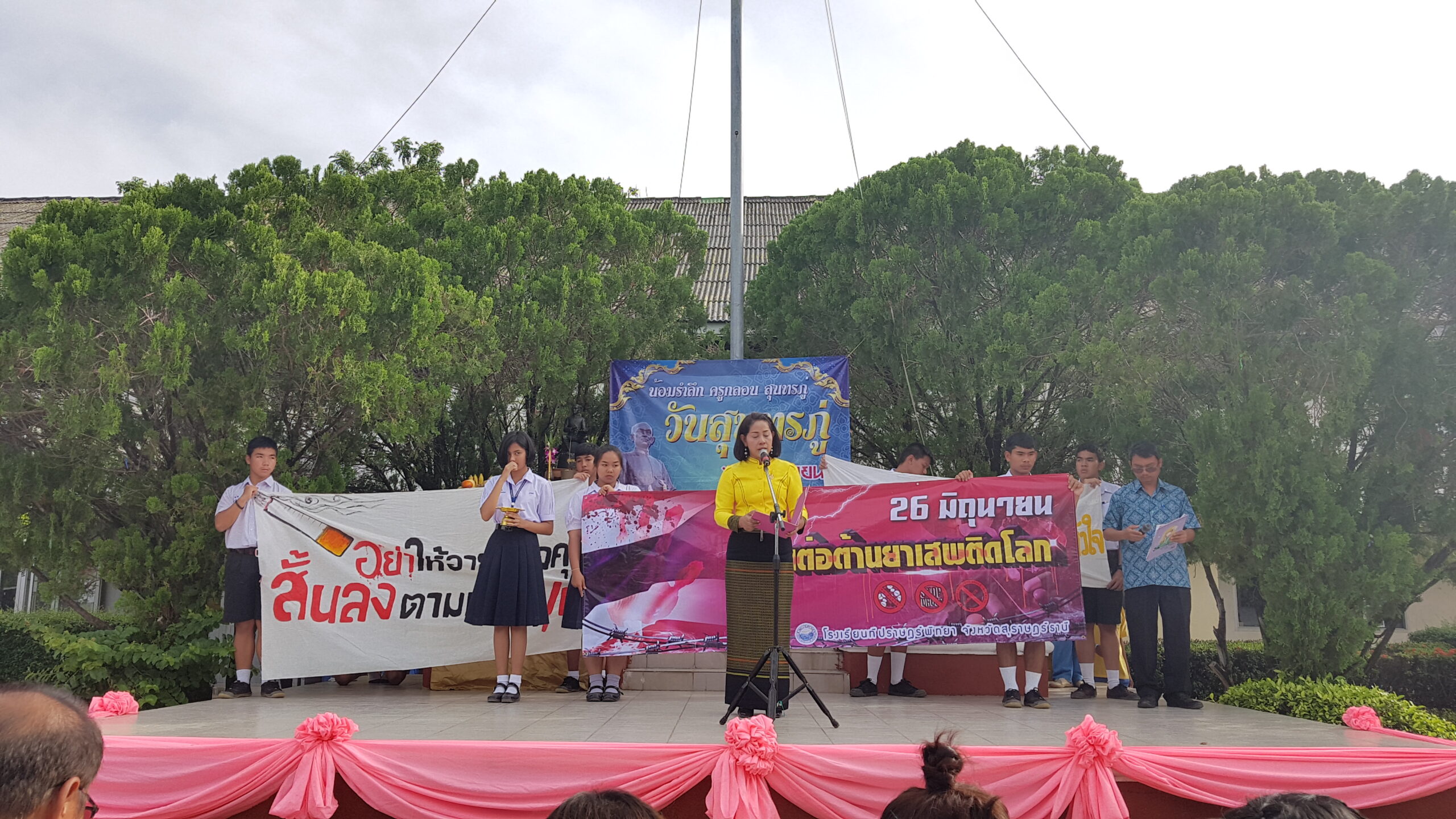 โดยช่วงเช้ามีการอ่านสานส์และร่วมกันปฏิญาณว่าจะไม่ยุ่งเกี่ยวกับยาเสพติดทุกชนิด ในช่วงบ่ายมีการแสดงนิทรรศการเรื่องยาเสพติด และประกวดวงดนตรีนักเรียนอีกด้วย