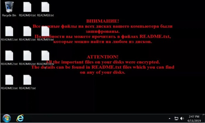 Shade มัลแวร์เรียกค่าไถ่ กลับมาระบาดใหม่อีกครั้ง แพร่ผ่านไฟล์แนบในอีเมล ในไทยตกเป็นเหยื่อแล้วกว่า 700 ราย โดยหลังมัลแวร์ติดตั้งบนเครื่องคอม จะเปลี่ยนนามสกุลไฟล์เป็น .crypted000007 พร้อมทั้งเปลี่ยนพื้นหลังหน้าจอให้เป็นสีดำแสดงข้อความเป็นภาษารัสเซียและภาษาอังกฤษ รวมถึงสร้างไฟล์ README(ตัวเลข 1 – 10).txt เพื่อแจ้งเหยื่อส่งอีเมลติดต่อกลับเพื่อขอข้อมูลวิธีกู้ไฟล์กลับคืน